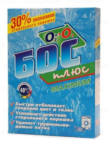 Усиленная формула средства БОС плюс "Maximum" с максимальным содержанием активного кислорода специально разработана для отбеливания без кипячения всех видов тканей, включая шерсть и шёлк, при низких температурах (30°-50ºС).