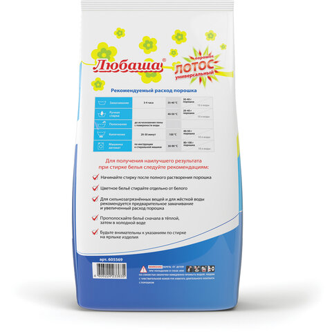 Стиральный порошок для стирки в автоматических стиральных машинах ЛЮБАША - современное решение, позволяющее экономить собственное время и затраты воды. Подходит для замачивания и стирки изделий из хлопчатобумажных, льняных и синтетических волокон.