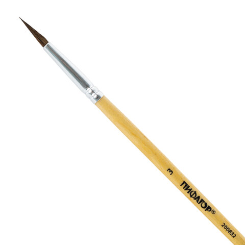 Кисть из волоса пони отлично впитывает и отдает краску, хорошо держит форму, долговечна и надежна. Кисть №3 позволит прорисовывать мелкие детали. Деревянную лакированную рукоятку кисти удобно держать в руке.