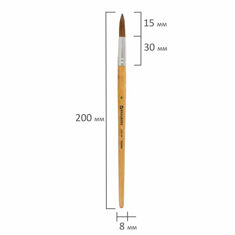 Круглая кисть из волоса пони. Хорошо сохраняет форму. Отлично удерживает краску. Подходит для работы с акварелью, гуашью, тушью. Снабжена защитным пластиковым колпачком.